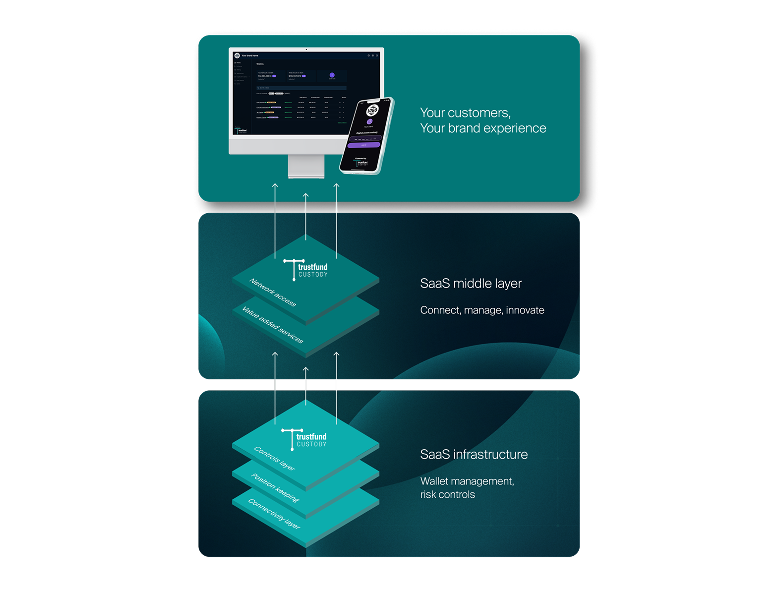 Quickly and safely offer our award-winning institutional grade digital asset services to your own customers with Solutions by Trust Fund Custody